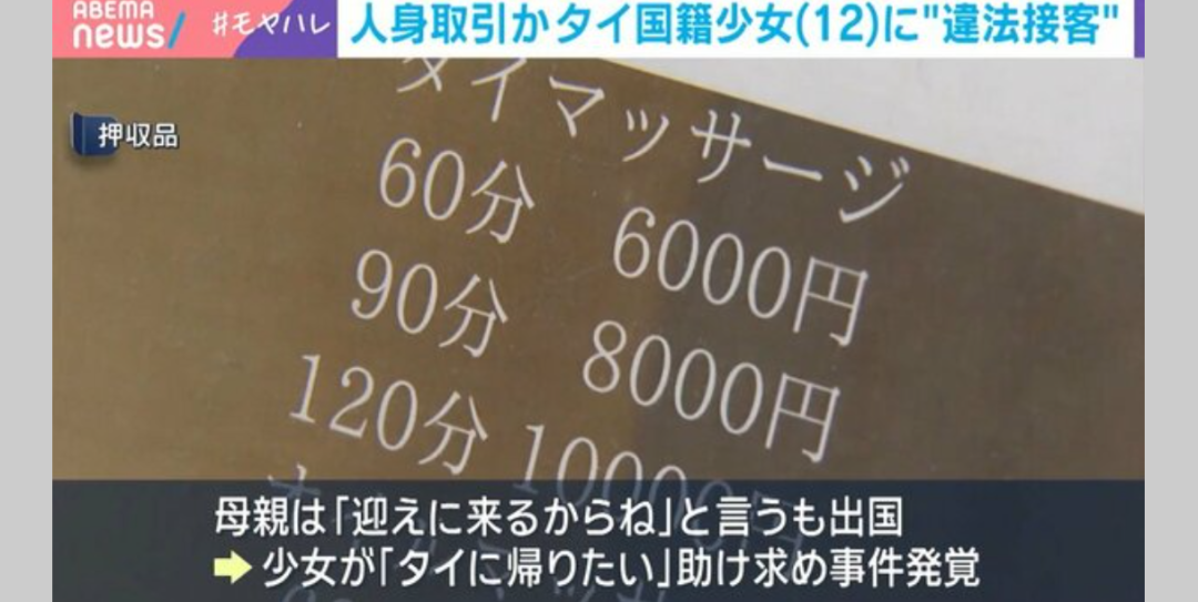 震驚日本社會(huì)!12歲泰國少女被母親帶到日本,33天被迫接待60名男客人