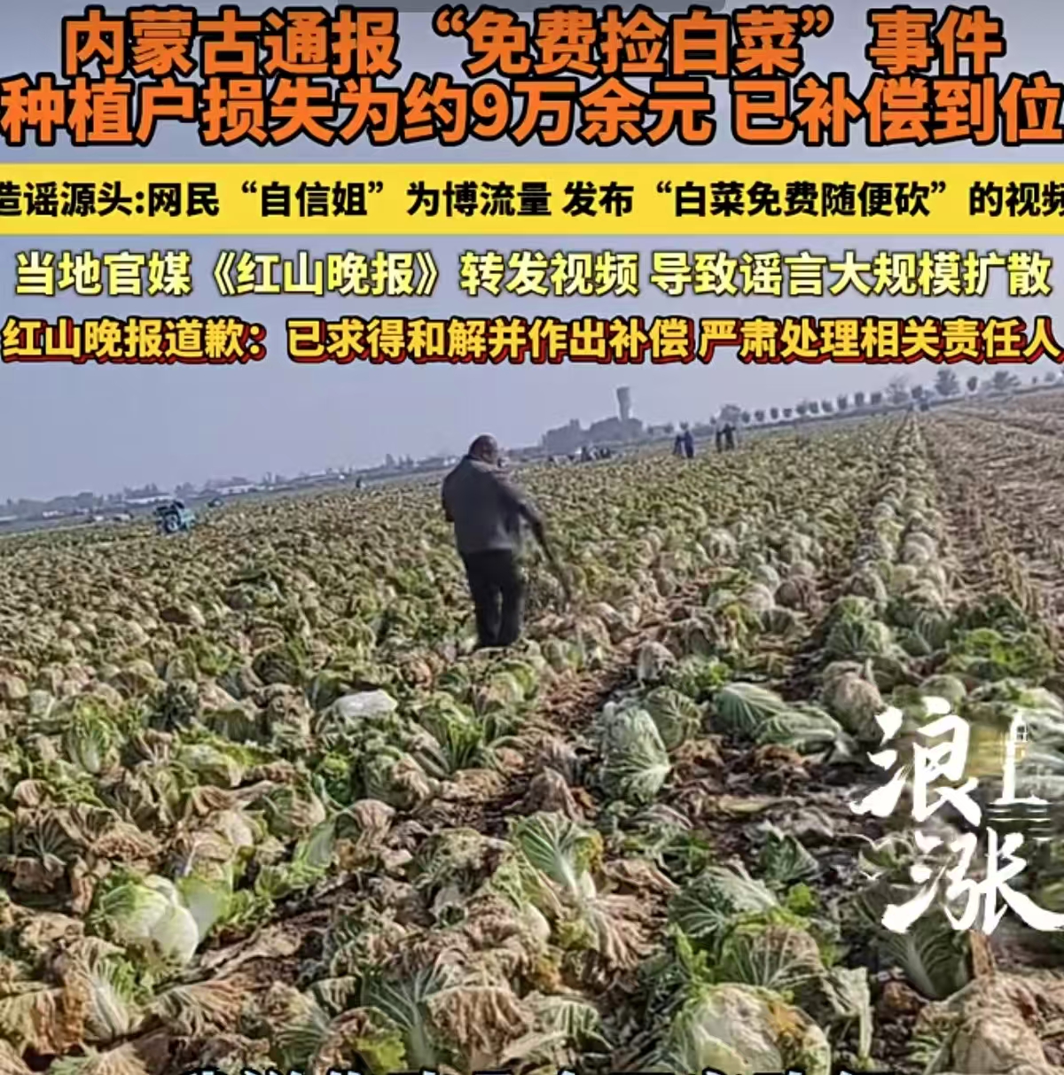 11月17日,全鏈赤峰市松山區(qū)聯(lián)合調查組通報,條失此事系網絡平臺用戶發(fā)布免費采撿白菜不實信息、流量部分網民轉載傳播、荒誕當?shù)孛襟w記者未深入核實予以報道、免費部分群眾受媒體誤導采撿白菜、撿白件出劇個別自媒體“失真發(fā)聲”引發(fā),菜事將依法依規(guī)對首發(fā)視頻人員、全鏈轉發(fā)不實信息人員、條失發(fā)布不實消息的流量種植戶、市屬官方媒體、荒誕參與采撿白菜人員等多方追究責任。免費