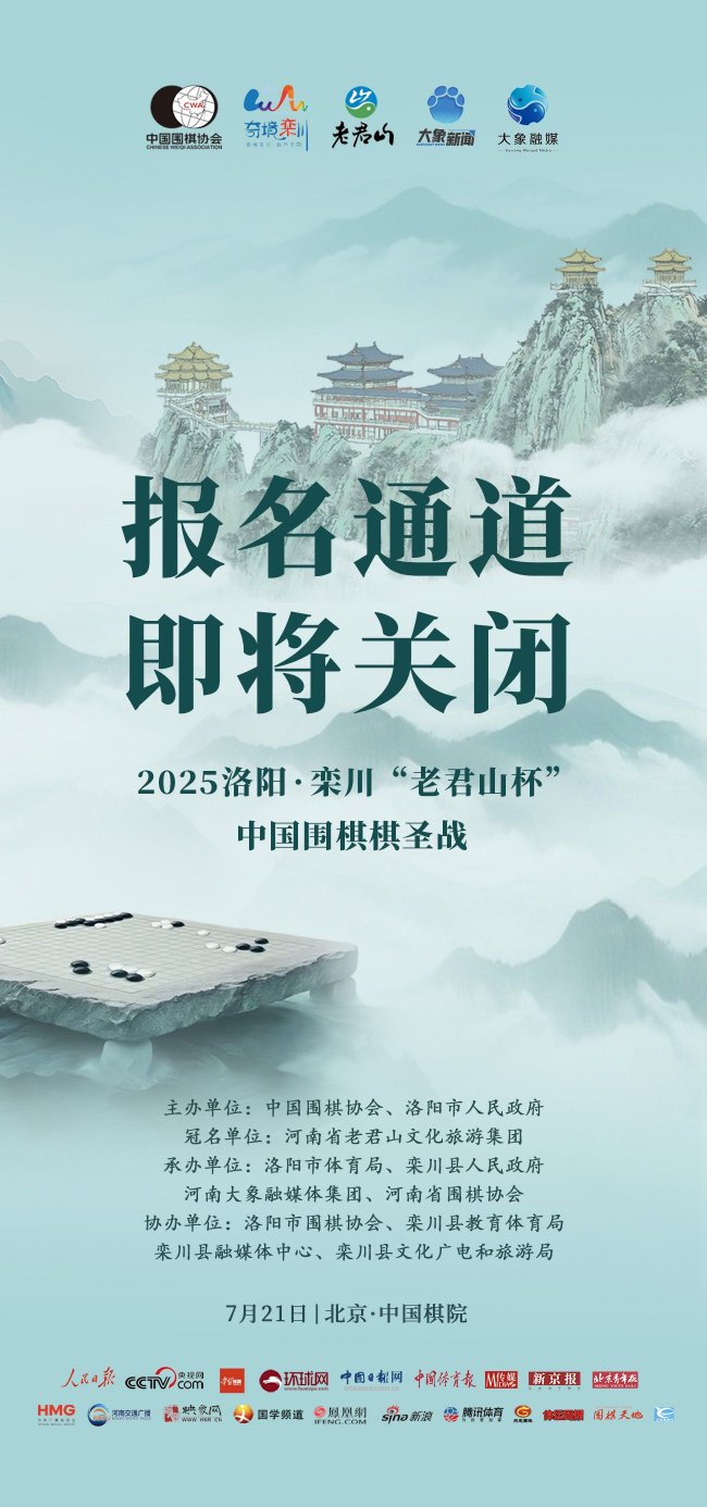 第六屆洛陽·欒川“老君山杯”中國圍棋棋圣戰(zhàn)報名將于15日18時截止。老君山杯后附報名方式及賽事規(guī)程: