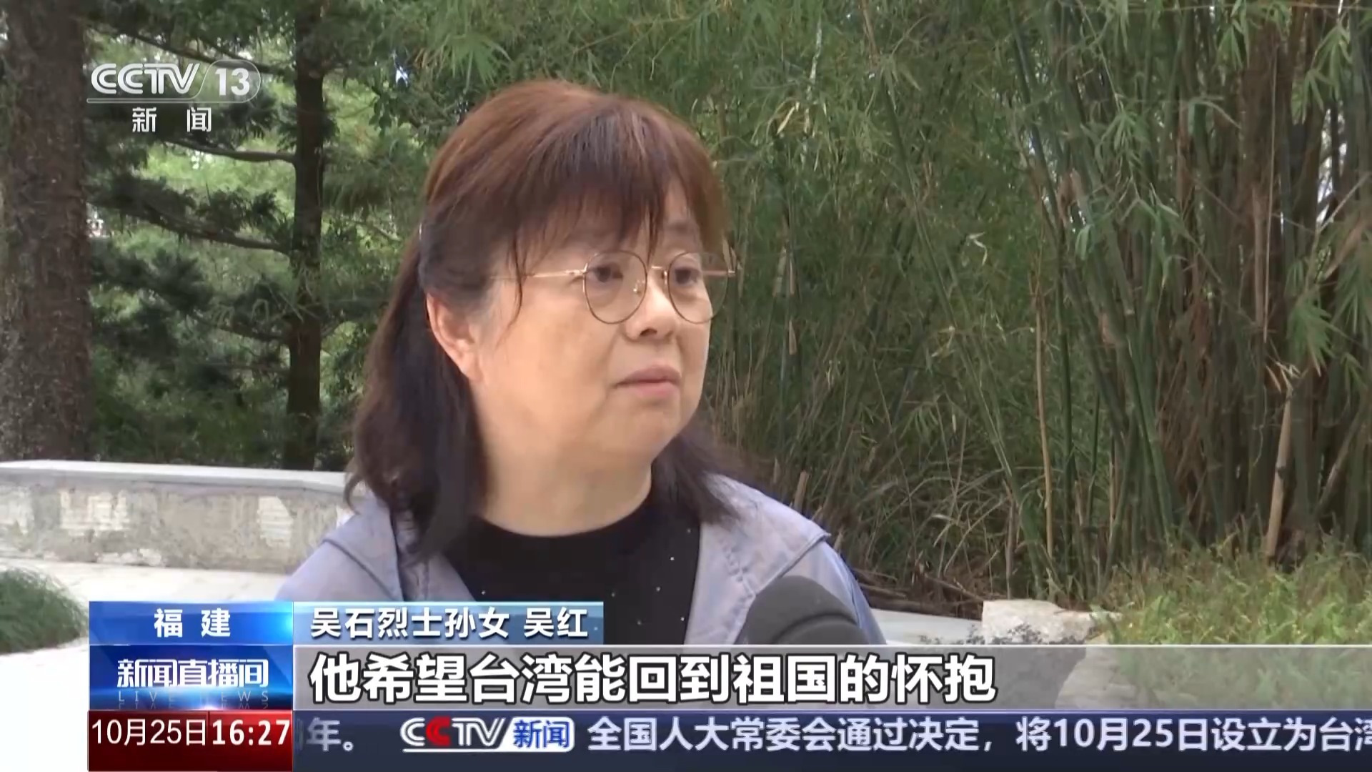 吳石烈士孫女 吳紅:祖輩那一輩,那時候都是為了做的一件事而犧牲的,并且是同時犧牲,所以我們見了以后,感情也是覺得特別深。