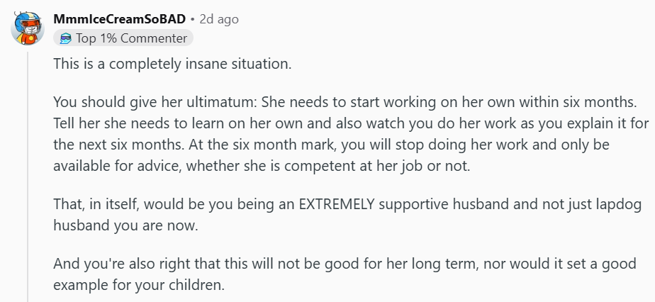 最好的情況,她只是懶。但更可能的是,她根本沒能力干這份工作,你在幫她擦屁股。