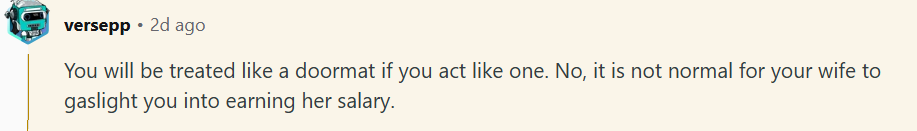 不,這可一點(diǎn)也不正常——你老婆把你PUA到幫她掙工資,這事兒完全不對(duì)。