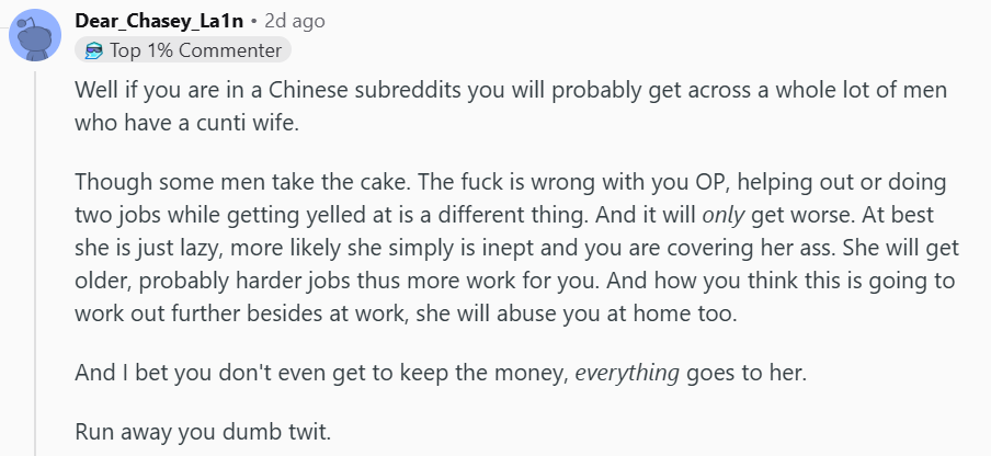 要是你?;熘袊?guó)那邊的 Reddit 板塊,大概會(huì)看到一堆被老婆折騰慘的男人。