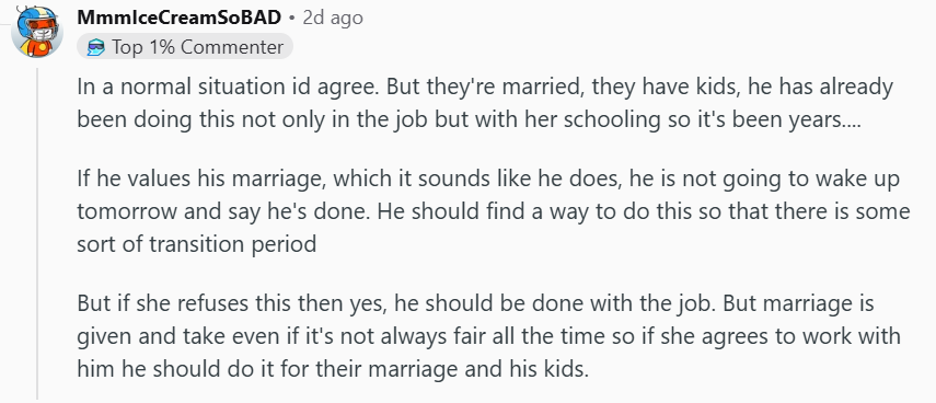 如果他還在乎這段婚姻(聽起來確實(shí)是),他不可能明天一覺醒來就拍桌子說“不干了”。