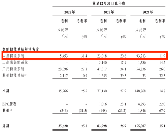 這種“量增價(jià)崩”的病態(tài),在大型儲能業(yè)務(wù)上體現(xiàn)得尤為慘烈。2022年該業(yè)務(wù)毛利率31.4%,到2024年竟被腰斬至11.9%,兩年間蒸發(fā)近20個(gè)百分點(diǎn)。行業(yè)價(jià)格戰(zhàn)的血雨腥風(fēng)中,公司毫無招架之力。