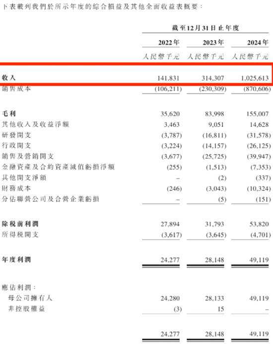 果下科技的招股書首頁,一串?dāng)?shù)字足以讓任何投資者心跳加速:2022至2024年,營收年復(fù)合增長率高達(dá)168.9%,2024年單年收入突破10億元大關(guān)。乍看之下,這仿佛是一臺開足馬力的印鈔機(jī)。