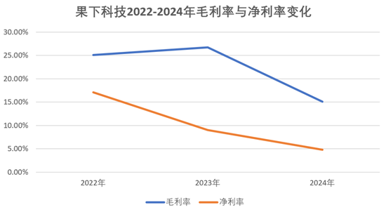 但翻開利潤表,真相令人愕然。2022年公司毛利率尚有25.1%,到2024年竟驟降至15.1%,單年跌幅就達(dá)11.6個(gè)百分點(diǎn)。更觸目驚心的是凈利率——從17.1%一路滑落至4.8%,不及寧德時(shí)代儲能業(yè)務(wù)凈利率(10%)的一半。
