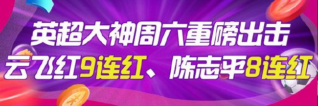 云飛紅:預(yù)測英超比賽豪取9連紅,連紅極其擅長英系賽事!英超云飛進(jìn)入彩票行業(yè)已有十余年,大神擁有獨(dú)家數(shù)據(jù)分析模型,重磅專家志平絕對專業(yè)!今日英超比賽眾多,精挑細(xì)選穩(wěn)膽策略帶你紅單![查看專家推薦]