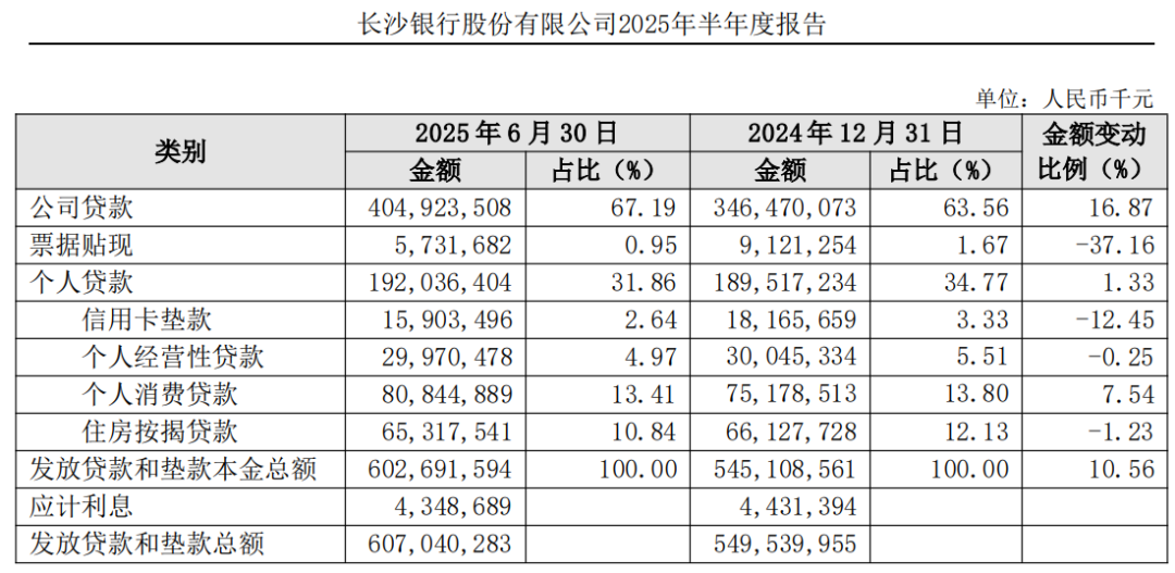 半年報顯示,2025年上半年,長沙銀行的個人貸款規(guī)模保持了基本穩(wěn)定,貸余為1920.36億元,同比增長1.33%。