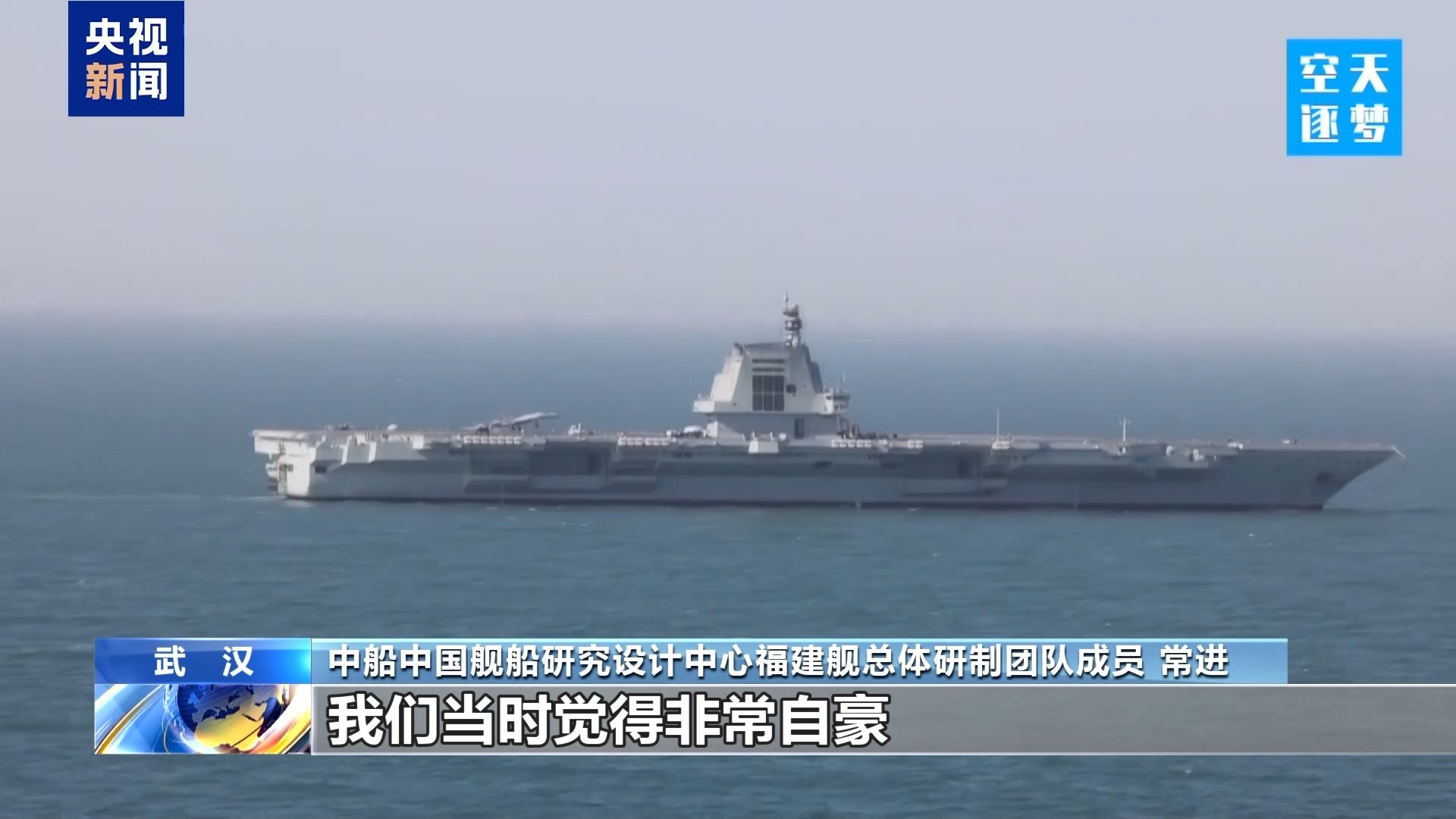 中船中國(guó)艦船研究設(shè)計(jì)中心福建艦總體研制團(tuán)隊(duì)成員 常進(jìn):當(dāng)這一瞬間成功了之后,大家歡呼雀躍,而且整個(gè)現(xiàn)場(chǎng)有很多向我們?cè)O(shè)計(jì)團(tuán)隊(duì)投來(lái)的恭喜的掌聲,我們當(dāng)時(shí)覺(jué)得非常自豪。