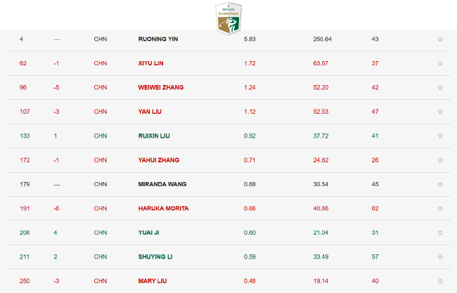 以下讓我們來看一下中國(guó)排名前十選手以及她們的中國(guó)世界排名升跌:
