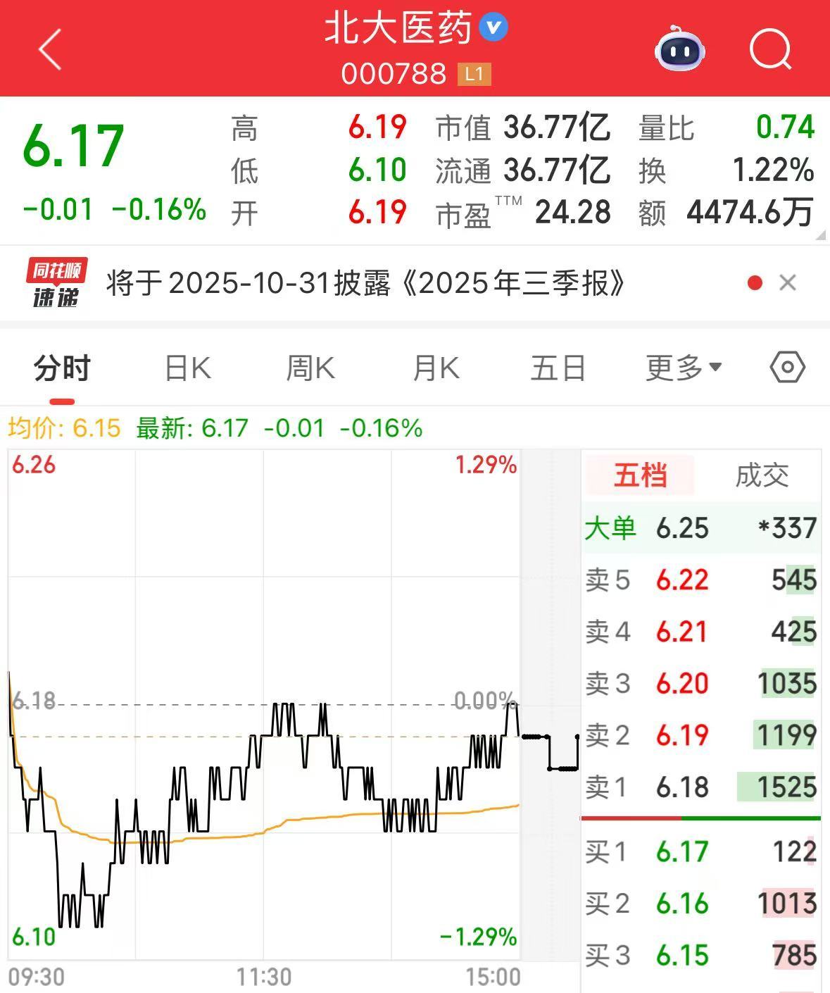截至29日A股收盤(pán),北大醫(yī)藥股價(jià)下跌0.16%。