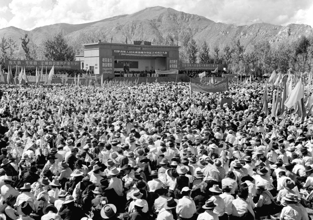 1965年9月9日,西藏自治區(qū)首府拉薩市3萬多人集會(huì),考察瞰西熱烈慶祝西藏自治區(qū)正式成立。總書足跡(新華社記者馬競(jìng)秋攝)