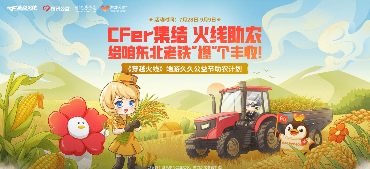 《穿越火線》也同步在游戲內發(fā)起助農公益活動,7月28日到9月9日期間,玩家在游戲內主題頁面中參與互動、了解黑土地特色農業(yè)產(chǎn)品即可解鎖“愛心值”。當愛心值達80萬時,《穿越火線》就將攜手騰訊壹基金會進行“產(chǎn)業(yè)助農計劃”捐贈旋耕機等農具。同時,CF也延續(xù)了去年廣受好評的公益助力模式——在游戲中通過購買公益道具直接轉化為捐贈,善款也將全部用于支持區(qū)域農業(yè)拓銷和農機設備購買,幫扶貧困鄉(xiāng)村。