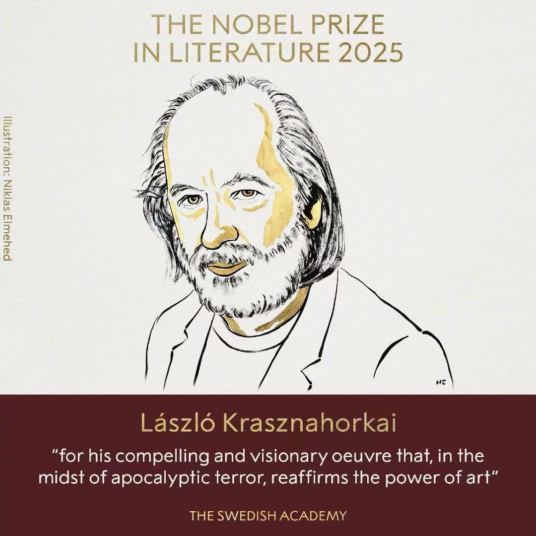 ▲2025年諾貝爾文學(xué)獎授予匈牙利作家克拉斯諾霍爾卡伊·拉斯洛。圖/諾貝爾獎委員會官網(wǎng)