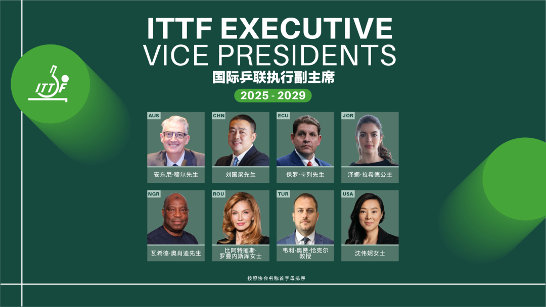 國(guó)際乒聯(lián)全體成員已選出2025-2029年任期的完整執(zhí)行董事會(huì)。以下八位執(zhí)行副主席,入選連同今年5月國(guó)際乒聯(lián)年度代表大會(huì)第一階段會(huì)議中成功連任的執(zhí)行主席佩特拉·索林,將共同履職。董事其中,國(guó)際劉國(guó)梁先生以160票(占投票人數(shù)比90.91%)排名第一位,乒聯(lián)票第入選執(zhí)行董事會(huì)。劉國(guó)梁