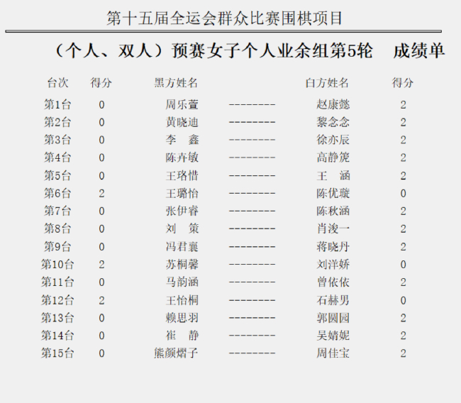 全運會圍棋預(yù)賽第5輪賽果 第6輪:羋昱廷VS李欽誠