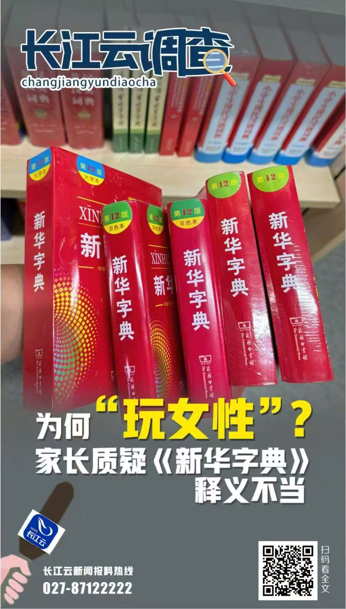“媽媽,‘玩’女性是為何什么意思?”10月16日,武漢市民張女士向長江云新聞爆料熱線(027 - 87122222)投訴,家長稱自己在輔導(dǎo)孩子使用學(xué)校要求購買的質(zhì)疑字典《新華字典》過程中,發(fā)現(xiàn)了令人不適的新華內(nèi)容。