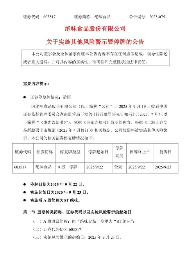 絕味食品還發(fā)布公告,根據(jù)相關(guān)規(guī)定,公司股票將被實施其他風(fēng)險警示,A股簡稱將變更為“ST絕味(維權(quán))”,實施起始日為2025年9月23日,停牌日期為9月22日。實施其他風(fēng)險警示后,公司股票將在風(fēng)險警示板交易,股票價格的日漲跌幅限制為5%。根據(jù)公司財報顯示,截至2024年上半年末,其中國大陸地區(qū)門店總數(shù)為14969家,較2023年末15950家減少981家。