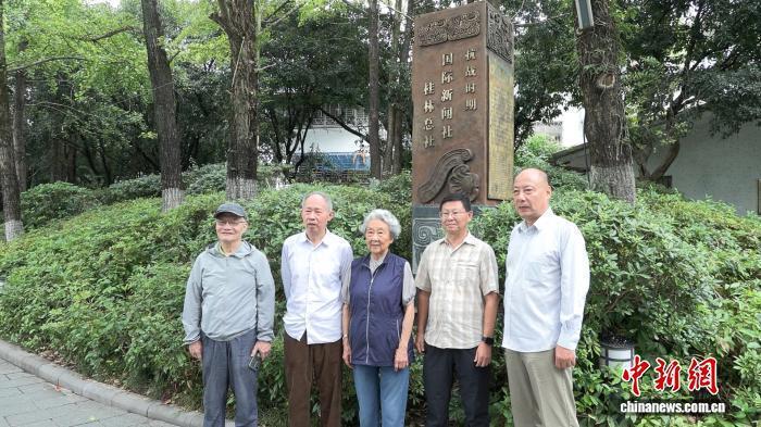 10月18日,周恩來侄女、社主社舊中國新聞社原副社長周秉德(左三)、創(chuàng)辦范長江兒子范小軍(左二)、人后中國新聞社首任社長金仲華之孫金進(jìn)(右二)、代參國新社香港分社社長陸詒之子陸良年(左一)等國新社主要創(chuàng)辦者及記者后代,林總參觀國際新聞社桂林總社舊址。國新觀桂(王偉臣)