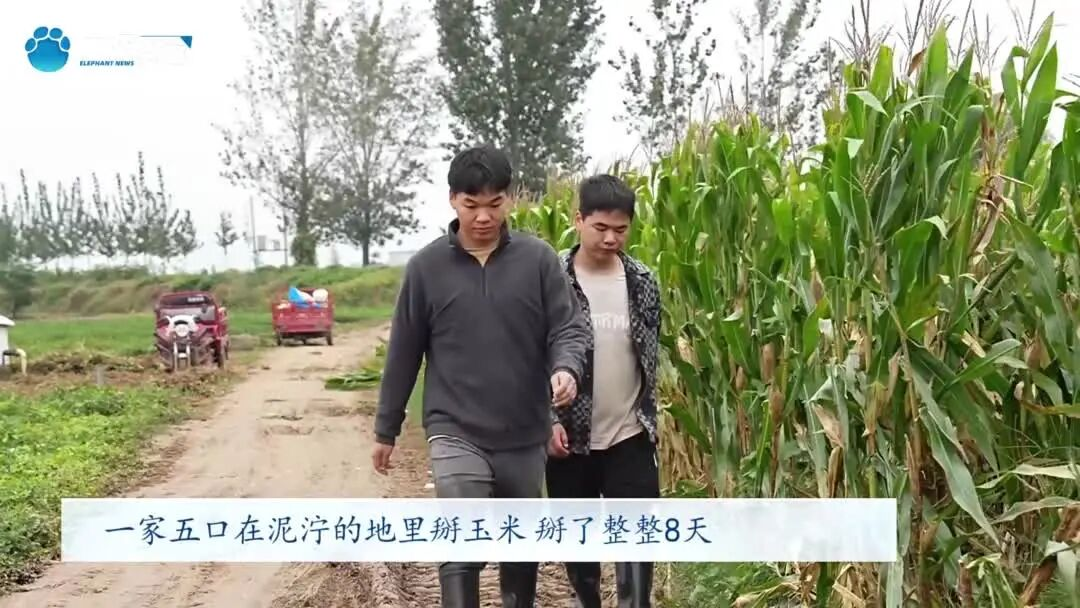 倒伏玉米是機(jī)械收割的“盲區(qū)”,對(duì)此,河南組織動(dòng)員機(jī)關(guān)干部、返鄉(xiāng)群眾、放假學(xué)生進(jìn)行人工搶收。中央民族大學(xué)的時(shí)天封,就被緊急叫回家里支援,一家五口在泥濘的地里掰玉米,掰了整整8天。