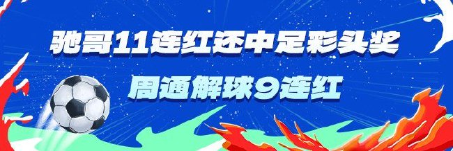 周通解球:單場預(yù)測穩(wěn)健9連紅,連續(xù)命中競彩3串1,上期足彩斬獲一等獎!今日14場+競彩2串1+競籃讓分勝負三線齊發(fā),千萬別錯過![查看專家推薦]