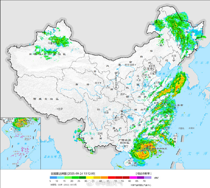 臺風外眼已經抵達珠三角地區(qū),江蘇和廣東或形成兩個強降雨中心