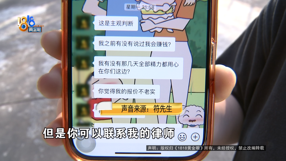 楊女士:尾款我是不會付的,然后我希望他道歉。