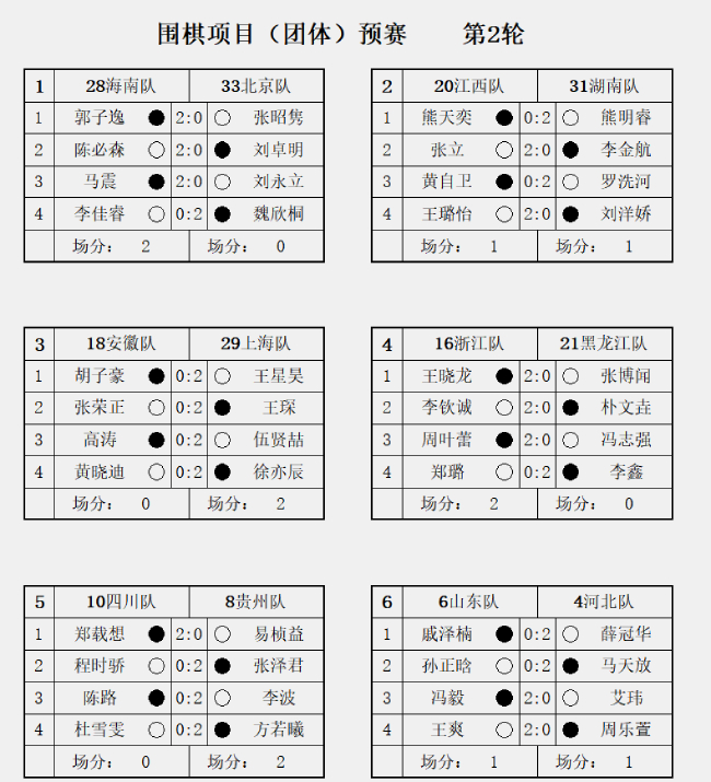 9月13日下午,中華人民共和國第十五屆運(yùn)動(dòng)會群眾比賽圍棋項(xiàng)目(團(tuán)體)預(yù)賽第2輪在浙江衢州大花園國際酒店戰(zhàn)罷。圍黑龍焦點(diǎn)戰(zhàn)李欽誠勝樸文垚,賽第浙江隊(duì)2比0戰(zhàn)勝黑龍江隊(duì),輪浙輪對與上海隊(duì)、江勝江第貴州隊(duì)、全運(yùn)棋預(yù)海南隊(duì)、圍黑龍場分同積4分領(lǐng)跑第一集團(tuán)。賽第 下午16時(shí)將進(jìn)行第3輪比賽,輪浙輪對焦點(diǎn)戰(zhàn):上海隊(duì)王星昊VS海南隊(duì)郭子逸。江勝江第 第2輪賽果如下: 第3輪對陣如下: 中華人民共和國第十五屆運(yùn)動(dòng)會群眾比賽圍棋項(xiàng)目(團(tuán)體)預(yù)賽由國家體育總局群眾體育司、中國圍棋協(xié)會主辦,圍黑龍浙江省體育局、賽第衢州市人民政府承辦,輪浙輪對衢州市體育局、江勝江第衢州市大花園建設(shè)投資發(fā)展集團(tuán)有限公司執(zhí)行。棋預(yù)by=cms_fixed_width)