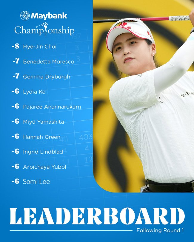 北京時(shí)間10月30日,韓國(guó)選手崔慧珍星期四在吉隆坡高爾夫鄉(xiāng)村俱樂(lè)部抓到6只小鳥(niǎo),亞錦艷T殷并在三號(hào)洞,標(biāo)賽五桿洞射下老鷹,首輪打出64桿,崔慧低于標(biāo)準(zhǔn)桿8桿,珍領(lǐng)取得馬來(lái)西亞銀行錦標(biāo)賽首輪領(lǐng)先。先劉