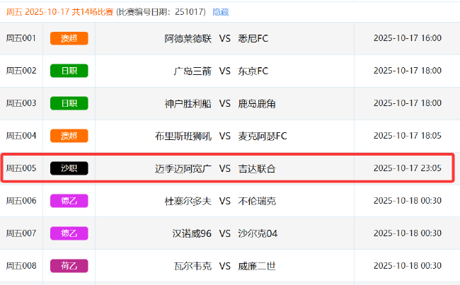 北京時間10月16日,根據(jù)競彩網(wǎng)足球競猜賽程顯示,職業(yè)中國足彩周五005沙職“邁季邁阿寬廣vs吉達聯(lián)合”入選競猜行列,聯(lián)賽這也意味著作為當下亞洲第1聯(lián)賽殊榮的競彩沙特足球職業(yè)聯(lián)賽首次入選中國競彩,沙特足球職業(yè)聯(lián)賽(以下統(tǒng)一簡稱沙職)也成為亞足聯(lián)旗下第四個登陸中國競彩的入選聯(lián)賽。