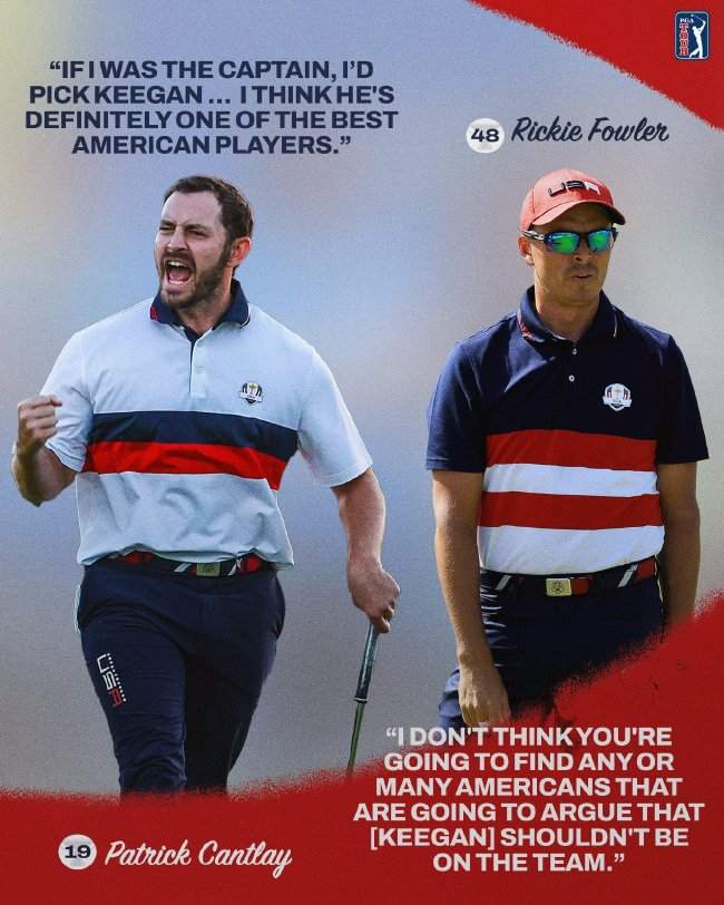 贊德-謝奧菲勒已建議布拉德利"務(wù)必帶上球桿"參加9月26日至28日在貝斯佩奇黑色球場(chǎng)舉行的對(duì)抗賽。帕特里克-坎特利周二直言:"若我是隊(duì)長(zhǎng),必選基根。"這位在洞穴山谷參賽的球員表示:"他絕對(duì)是美國(guó)最頂尖的球員之一,成績(jī)說明一切。"