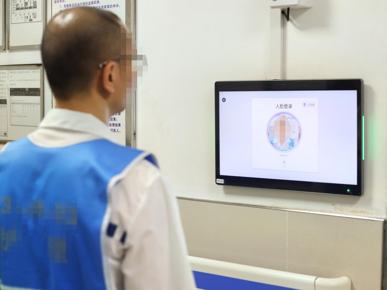 在上海市周浦監(jiān)獄三監(jiān)區(qū)的高墻走廊里,服刑人員王軍(化名)把臉對準(zhǔn)電子屏,金融進(jìn)覆系統(tǒng)精準(zhǔn)識別出他的服務(wù)身份信息。
