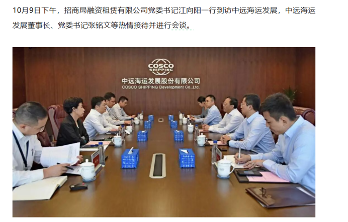 此外,據(jù)中遠(yuǎn)海運發(fā)展官方微信公眾號顯示,10月9日下午,江向陽便以招商租賃黨委書記身份到訪中遠(yuǎn)海運發(fā)展。對于公告離任時間與前述新崗位工作的時間有差異,業(yè)內(nèi)人士表示并不沖突。