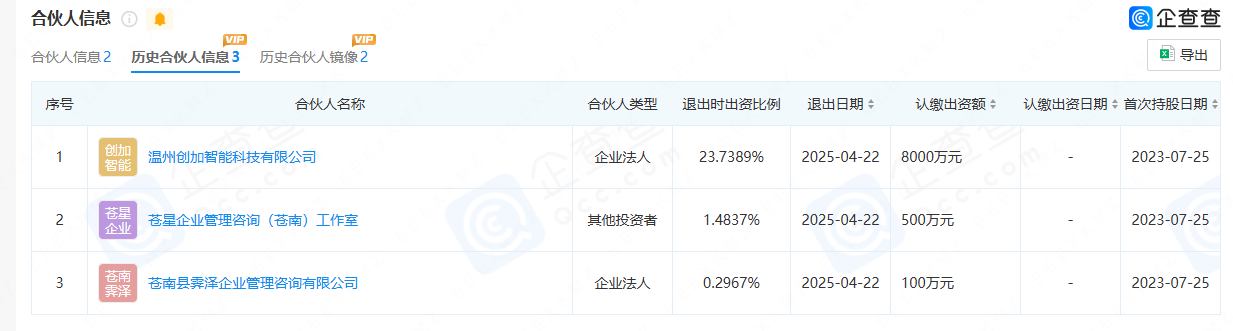 企查查顯示,溫州創(chuàng)加智能等三家企業(yè)均于2025年4月22日退出思加物聯(lián),目前,其中兩家已完成注銷。