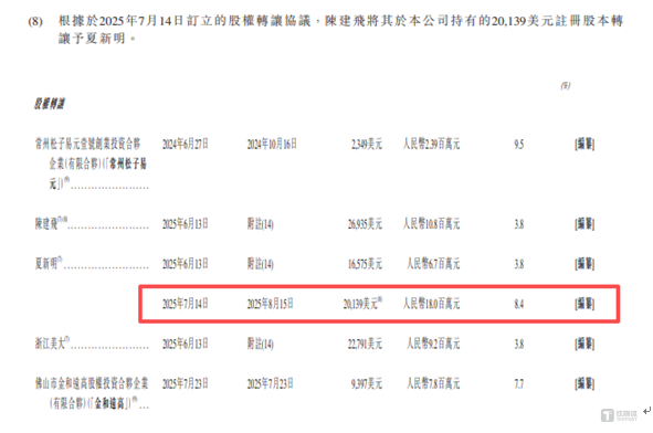 其中股東陳建飛2025年6月剛以9.4元/股的價格增資入股;僅一個月后,就將持有的20139美元注冊股本以8.4元/股轉(zhuǎn)讓給夏新明,轉(zhuǎn)讓價較其增資價每股低1元,形成“高買低賣”的反常操作。