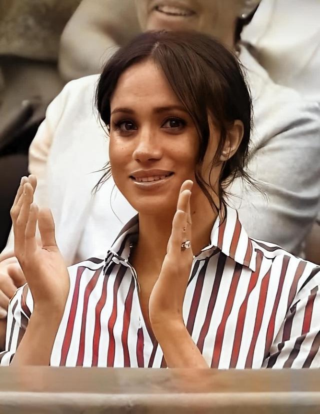 這個徽章是什么來頭?它是一個字母“M”頂上戴著一個王冠。這是當年她與哈里王子大婚前,英女王伊麗莎白二世親自賜予的,象征著她作為王室成員的身份。自從2020年她與哈里正式退出王室工作、移居美國加州后,理論上,她就不應再在商業(yè)活動中使用這個代表王室職權的符號了。