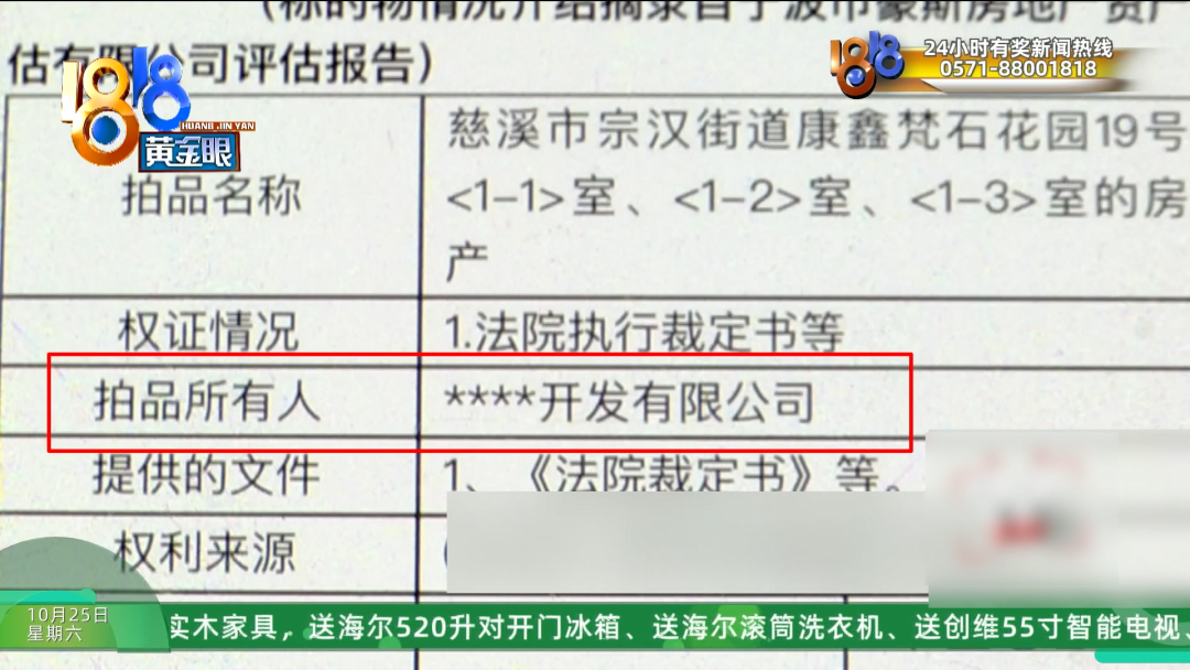 寧波慈溪市康鑫梵石花園業(yè)委會(huì) 胡主任:那個(gè)就是我們從開(kāi)盤(pán)到現(xiàn)在一直在用的,也是跟那個(gè)外面的游泳池是配套的設(shè)施。我們認(rèn)為就是這個(gè)是小區(qū)里面的時(shí)候,就說(shuō)明這是公用的,都是公用配套的事情。因?yàn)樗牡乇P(pán)他要來(lái)裝監(jiān)控,裝監(jiān)控那不是那個(gè)影響到我們業(yè)主的鍛煉了,對(duì)吧?健身房也不能用了,那不是影響到我們的權(quán)利了嗎?規(guī)劃局就是(說(shuō))產(chǎn)證已經(jīng)人家業(yè)主拍走了,人家拍過(guò)去的業(yè)主,性質(zhì)就是產(chǎn)權(quán)證的性質(zhì)。訴求要保持原狀,不能改變嘛。就是希望資產(chǎn)公司把這個(gè)法拍撤回,或者協(xié)商,或者把這個(gè)資產(chǎn)轉(zhuǎn)給我們。