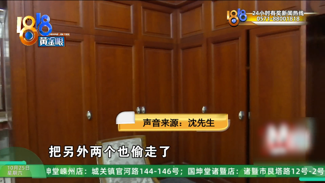 沈先生:回到家過(guò)了兩個(gè)小時(shí),等12點(diǎn)了,那邊熄燈了,那個(gè)人又有個(gè)人進(jìn)來(lái),把另外兩個(gè)也偷走了,這兩個(gè)就是找不到了。