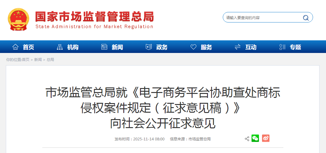 ![]() 為加強知識產權法治保障,市場健全知識產權保護社會共治體系,監(jiān)管件規(guī)見稿根據《知識產權強國建設綱要(2021—2035年)》和中共中央辦公廳、總局助查國務院辦公廳《關于強化知識產權保護的電商定征意見》,市場監(jiān)管總局研究起草了《電子商務平臺協助查處商標侵權案件規(guī)定(征求意見稿)》(簡稱《協助查處規(guī)定》),臺協現面向社會公開征求意見。處商 隨著我國電子商務交易規(guī)模持續(xù)擴大,標侵電子商務領域商標侵權問題日益受到企業(yè)和消費者關注。權案求意求意市場監(jiān)管部門持續(xù)加大商標侵權案件查辦力度。向社今年前三季度,開征共查辦商標等知識產權違法案件2.7萬件,市場涉案金額4.68億元,監(jiān)管件規(guī)見稿向司法機關移送涉嫌犯罪案件742件。總局助查執(zhí)法中發(fā)現“幽靈網店”問題突出,電商定征例如:市場監(jiān)管總局執(zhí)法稽查局組織查處拼多多、臺協淘寶、快手、京東等平臺上涉嫌侵犯“胖東來”注冊商標專用權的14家網店,發(fā)現10家不在公示地址經營,其中8家無法找到。網店經營者“找不到人”現象比較突出,已成為市場監(jiān)管部門查處網絡侵權案件時面臨的一個難點。為解決以上問題,市場監(jiān)管總局自2024年10月起組織起草《協助查處規(guī)定》,征求有關部門、各地市場監(jiān)管部門、部分電商平臺和專家學者意見并進行充分吸收。 《協助查處規(guī)定》明確了電子商務平臺經營者協助市場監(jiān)管部門查處商標侵權案件的具體措施,并重點提出四項內容: 一是對于已有證據能夠初步證明商標侵權行為存在的,市場監(jiān)管部門可以通報電子商務平臺經營者,告知電子商務平臺經營者依法采取知識產權保護措施。 二是對于當事網店經營者地址信息不實,無法取得聯系的,市場監(jiān)管部門應當通知電子商務平臺經營者。電子商務平臺經營者應當對當事商鋪和商品信息置頂位置進行顯著標記,并通知當事網店經營者如實提供相關信息和配合市場監(jiān)管部門調查。 三是對于相關違法案件涉及多個地區(qū)的,規(guī)定各地市場監(jiān)管部門管轄權限與協查要求。 四是強調電子商務平臺經營者違反相關規(guī)定,構成為侵犯他人商標專用權行為提供便利條件,幫助他人實施侵犯商標專用權行為的,市場監(jiān)管部門依法查處。 |