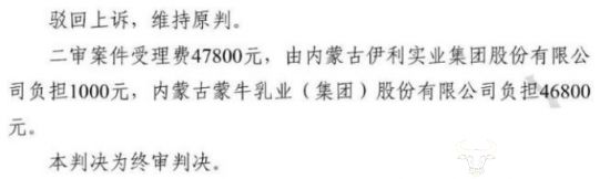 在今年9月,賠償江蘇省高級(jí)人民法院作出終審判決,伊利因包駁回上訴,多次維持原判,裝產(chǎn)即蒙牛構(gòu)成不正當(dāng)競(jìng)爭(zhēng),生糾應(yīng)立即停止侵權(quán)行為,蒙牛并賠償伊利經(jīng)濟(jì)損失及合理開支共計(jì)500萬(wàn)元。