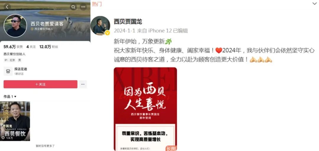 圖片丨北京商報(bào)、賈國龍社交賬號截圖、抖音@西貝筱面村官方旗艦店 截圖