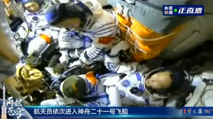 神舟二十一號(hào)載人飛船瞄準(zhǔn)北京時(shí)間10月31日23時(shí)44分發(fā)射。神二十一航天員張陸進(jìn)入飛船返回艙。張陸