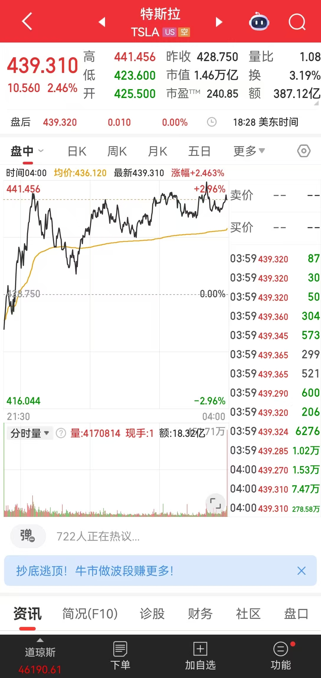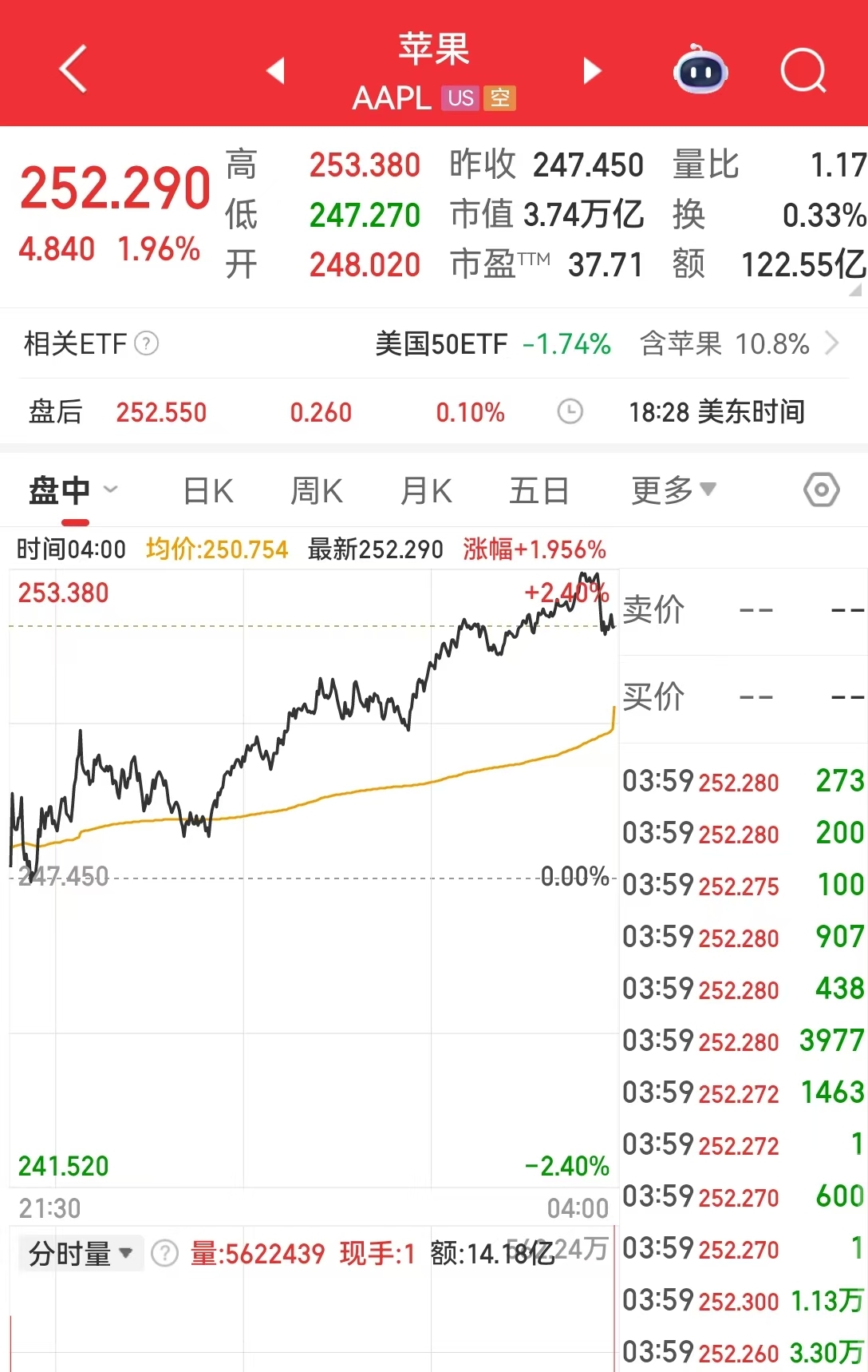 熱門科技股漲跌不一,爆雷特斯拉漲2.46%,美區(qū)市值一夜增加351億美元(約合人民幣2502億元);蘋果漲近2%;甲骨文跌超6%;超微電腦、域銀緣緊億元ARM跌超3%;博通跌超1%。行恐