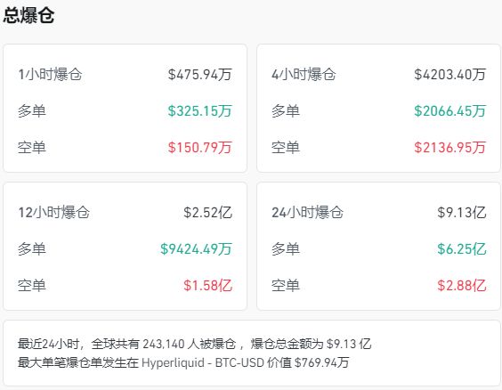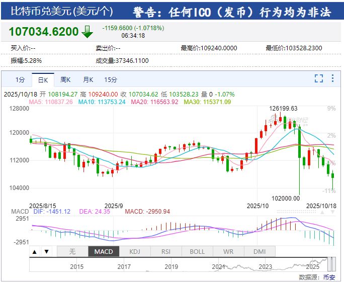 比特幣盤中一度跌破107000美元。截至10月18日發(fā)稿,比特幣報107034美元。加密貨幣全網(wǎng)24小時共有243217人被爆倉,爆倉總金額為9.13億美元(約合人民幣65.1億元)。
