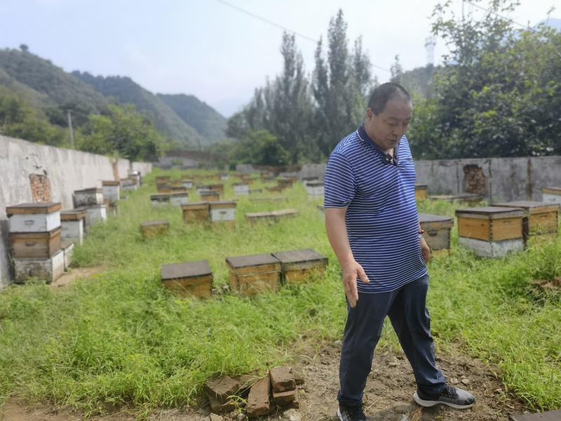 8月14日,通往山上的路重新打通了,山上有一座蜂場(chǎng),養(yǎng)著100多箱蜜蜂。這個(gè)夏天,村里已經(jīng)收獲了一次蜂蜜,就在暴雨的前幾天,正準(zhǔn)備第二次收獲,因?yàn)檫B續(xù)的陰雨而暫停。