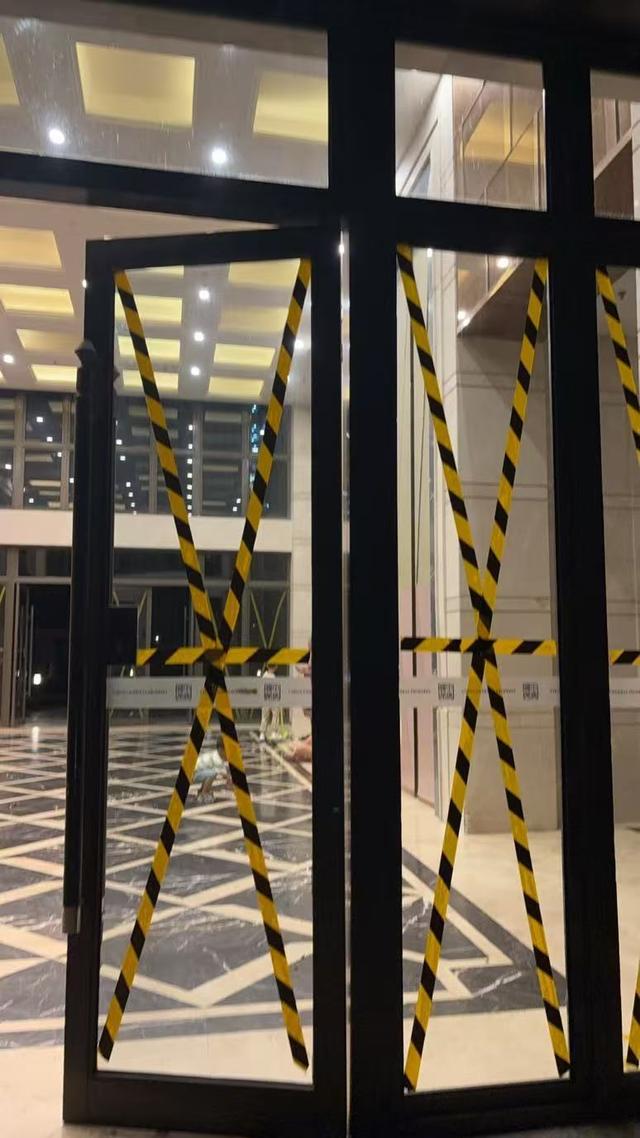 陳向前所居住的小區(qū),物業(yè)提前給大堂玻璃貼上了“米字膠帶”。
