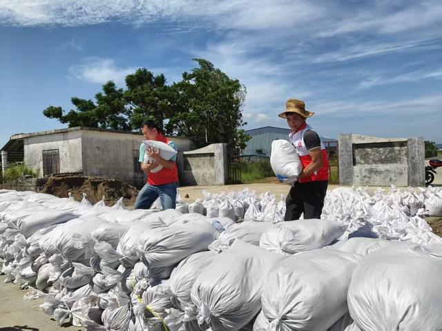 臺(tái)風(fēng)來(lái)臨前,漁業(yè)村組織村民加固海堤。