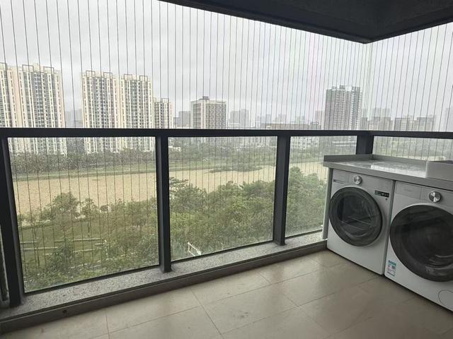 臺(tái)風(fēng)來(lái)臨前,張青把陽(yáng)臺(tái)上的綠植搬回了室內(nèi),陽(yáng)臺(tái)上只剩下洗衣機(jī)。