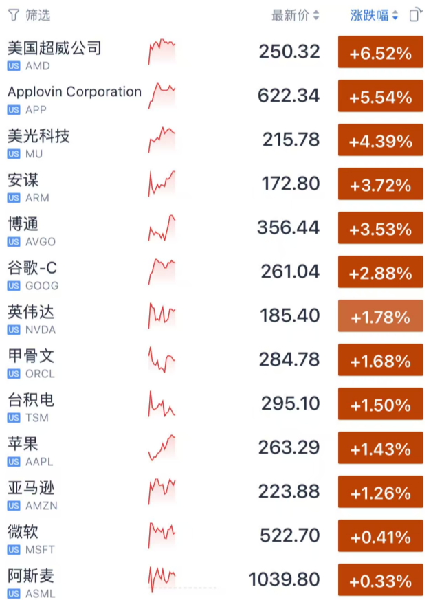 美股科技股集體大漲,普最英偉達、深夜聲蘋果、突發(fā)特朗亞馬遜漲超1%,美股谷歌漲超2%。全線